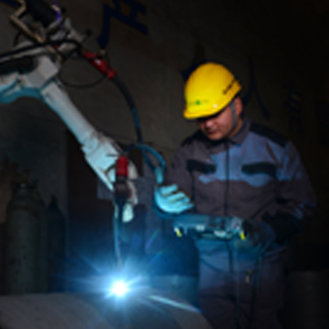2臺松下焊接機器人,高脈沖焊接,無飛濺,自動化程度高,焊縫美觀