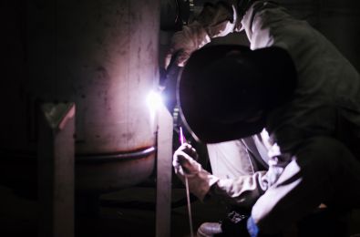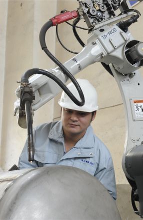 2臺松下焊接機器人,高脈沖焊接,無飛濺,自動化程度高,焊縫美觀